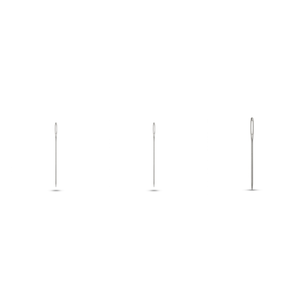 Compostas por aço inoxidável e disponíveis em três tamanhos: nº 22, nº 24 e nº 26. As agulhas de bordado número 26 e 24 são indicadas para ponto cruz, ponto livre (com fios finos ou poucos cabos), e no número 22 para vagonite e bordado livre com fios mais grossos.